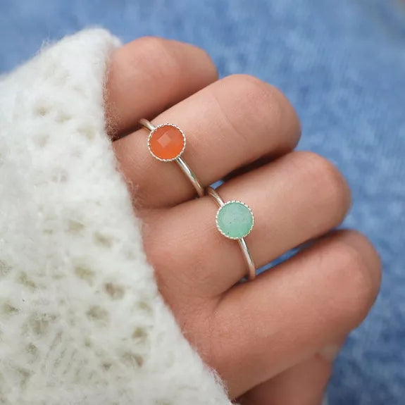 Colorée et minimaliste, cette bague avec son anneau fin en argent est ajustable pour toutes les tailles de doigts. Chaque pierre est sélectionnée avec soin pour sa qualité et ses reflets uniques.